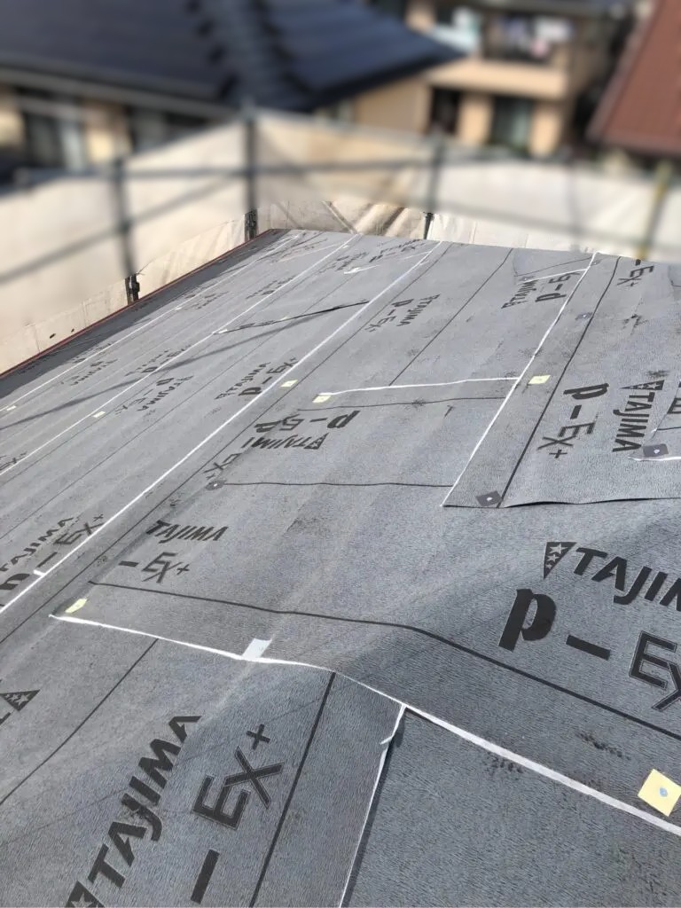今回は粘着ルーフィングではなく改質アスファルトルーフィングを使用しました。