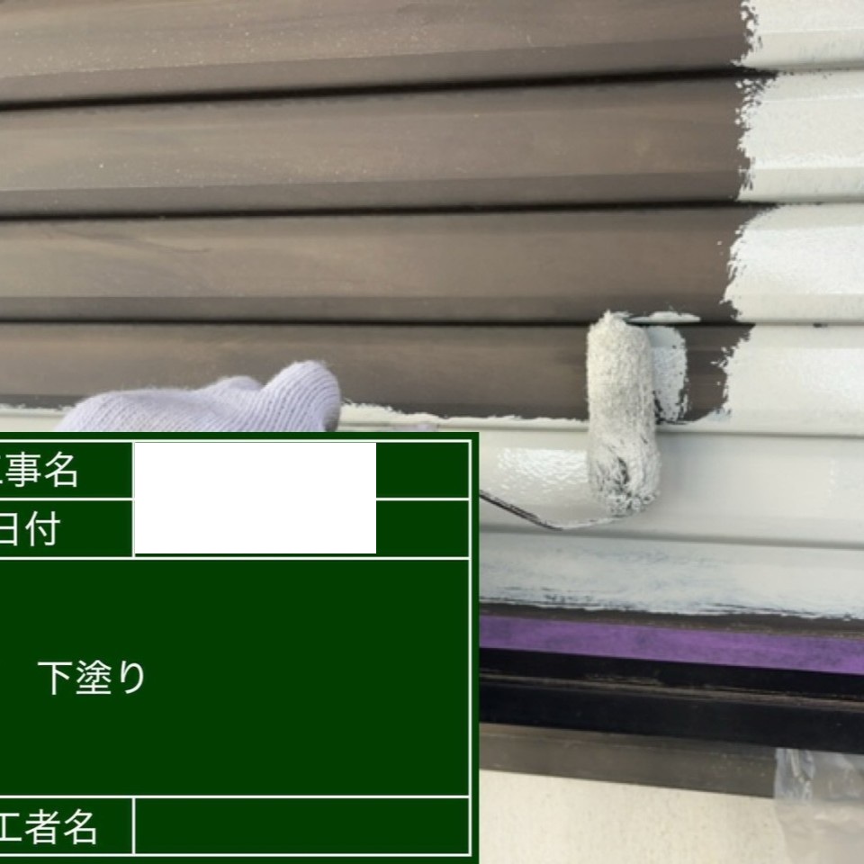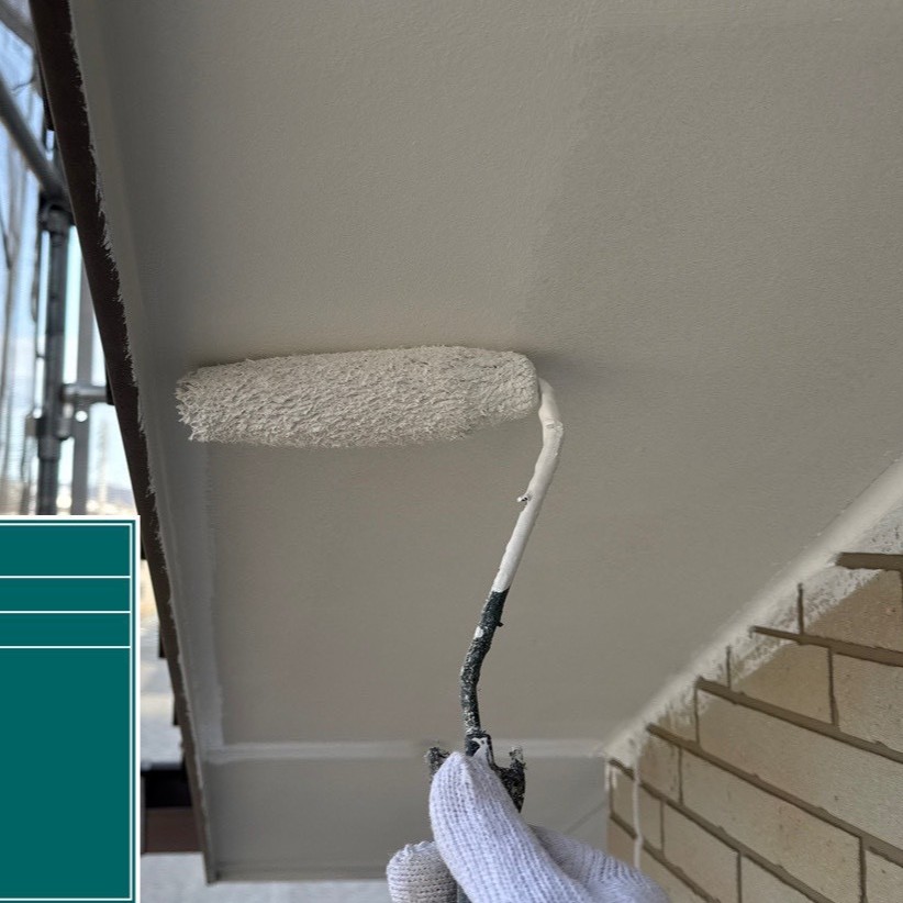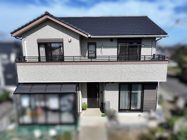 外壁には、少し黄身のある淡いグレーの「ガルグレー」を選定しました。落ち着きの上品さのある印象に◎ 期待耐用年数は21〜26年となりました。