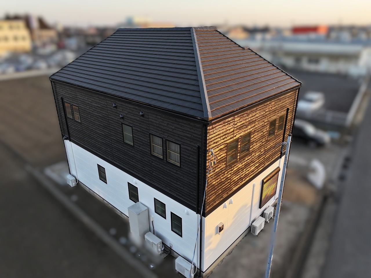 既存の配色を活かしながら、2階にチャコール、1階にクールホワイトを選定しました。また期待耐用年数は16〜19年となりました。