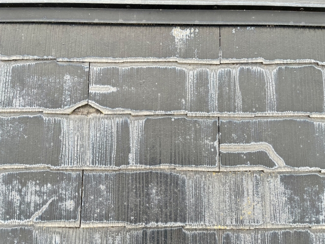 | 色あせ・塗膜の剥離 | ![]() | スレート屋根、金属屋根に多く見られます。塗膜のない瓦屋根ではほとんど発生しません。 |