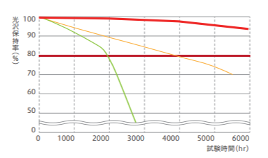 約14~17年分の劣化を再現しても、ツヤを80%以上保つ
