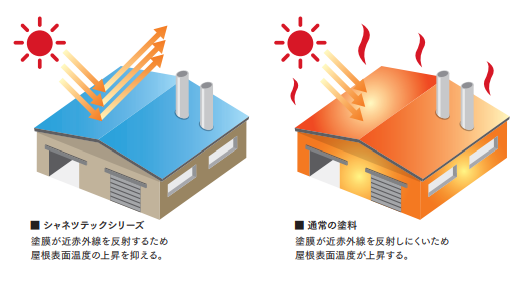 通常の塗料は、熱の原因となる近赤外線を吸収しやすい傾向があります。