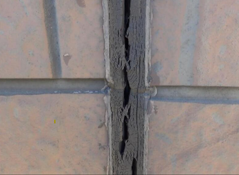 外壁の継ぎ目やサッシ周りの目地がひび割れたり、痩せたりしている状態です。劣化部分から雨水が浸入するおそれもあります。