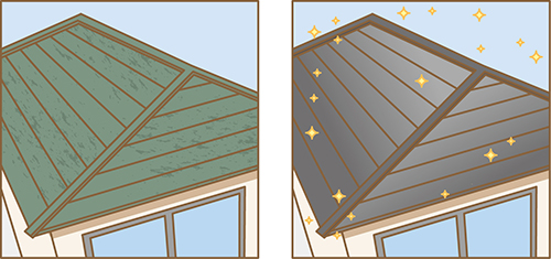 色あせは見た目の問題だけではなく、屋根の防水性や耐久性が低下しているサインでもあります。スレート屋根や金属屋根は紫外線に弱いため、早期に発見し、適切な屋根塗装を行なえば、住宅の寿命を延ばすことにつながります。