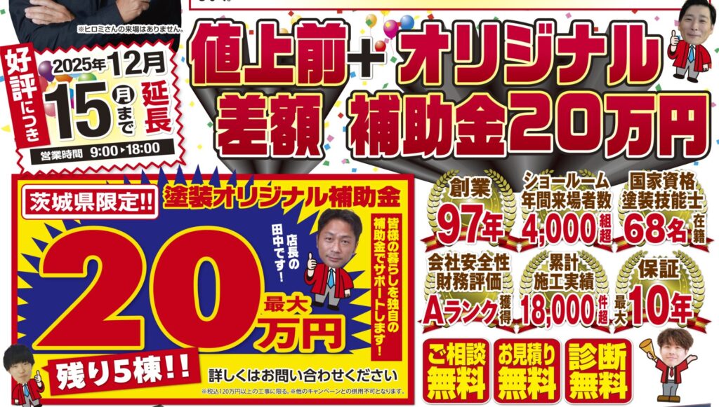 さらに、 茨城県限定のオリジナル補助金制度もご好評につき延長いたします!