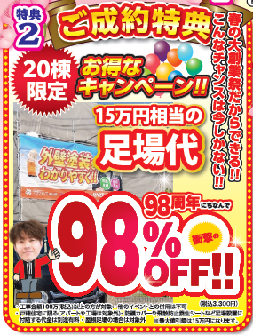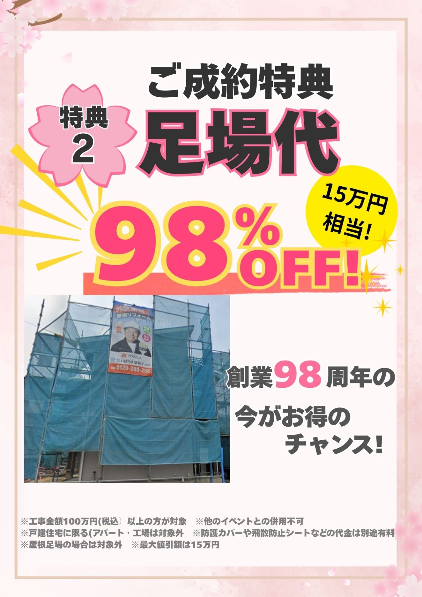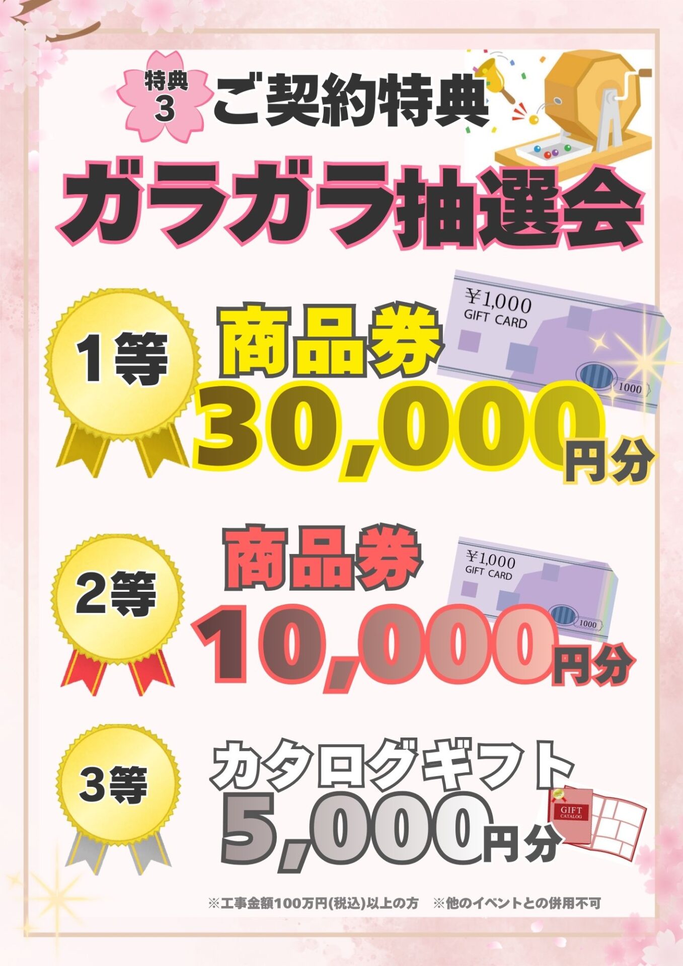 ただし、特典2・特典3の成約特典については、弊社で工事をご成約いただいた方のみ反映させていただきます。