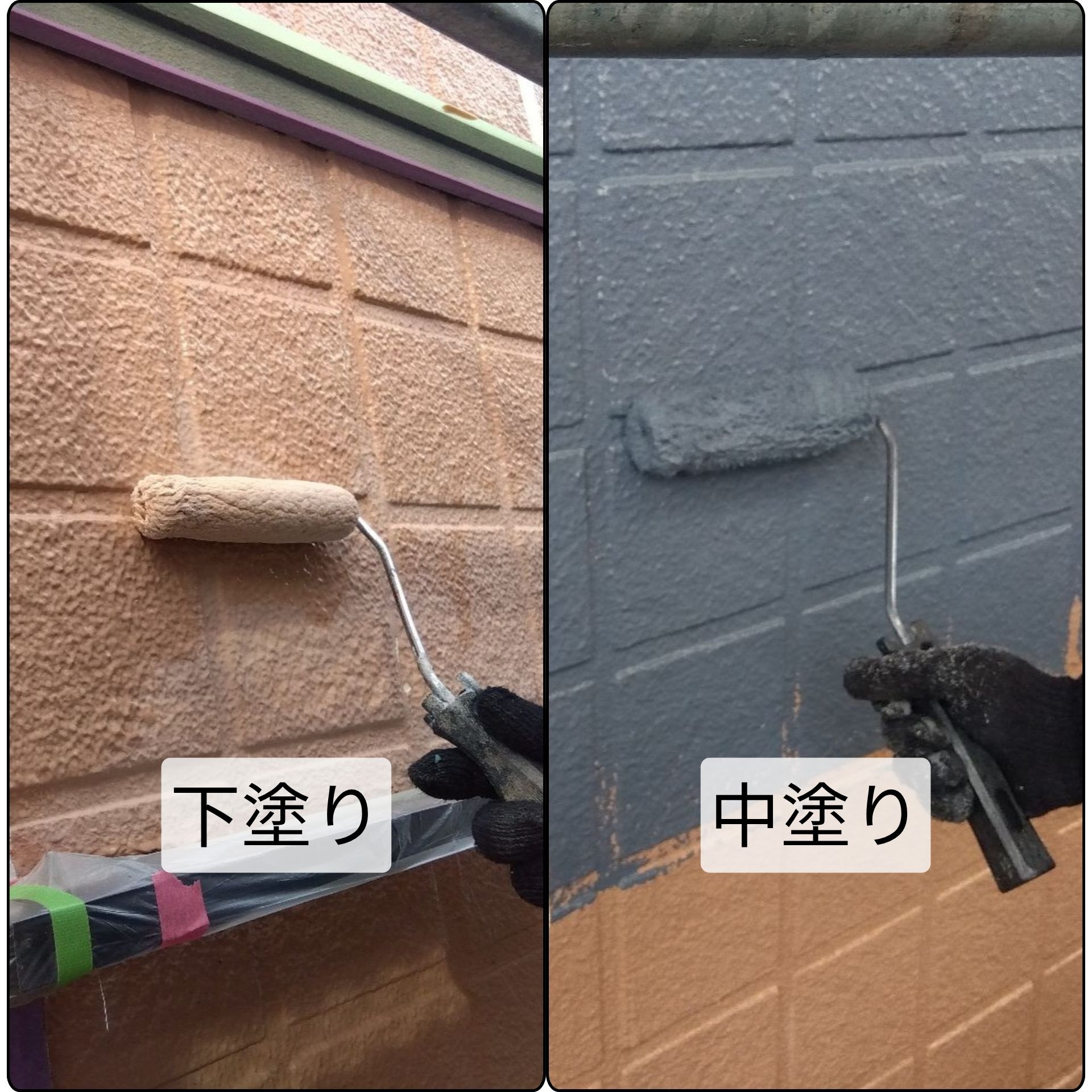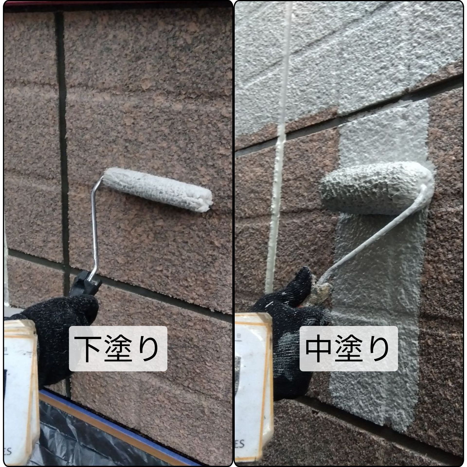 下塗り 綺麗にした外壁に下地を整えて、長持ちさせるために外壁を保護します。