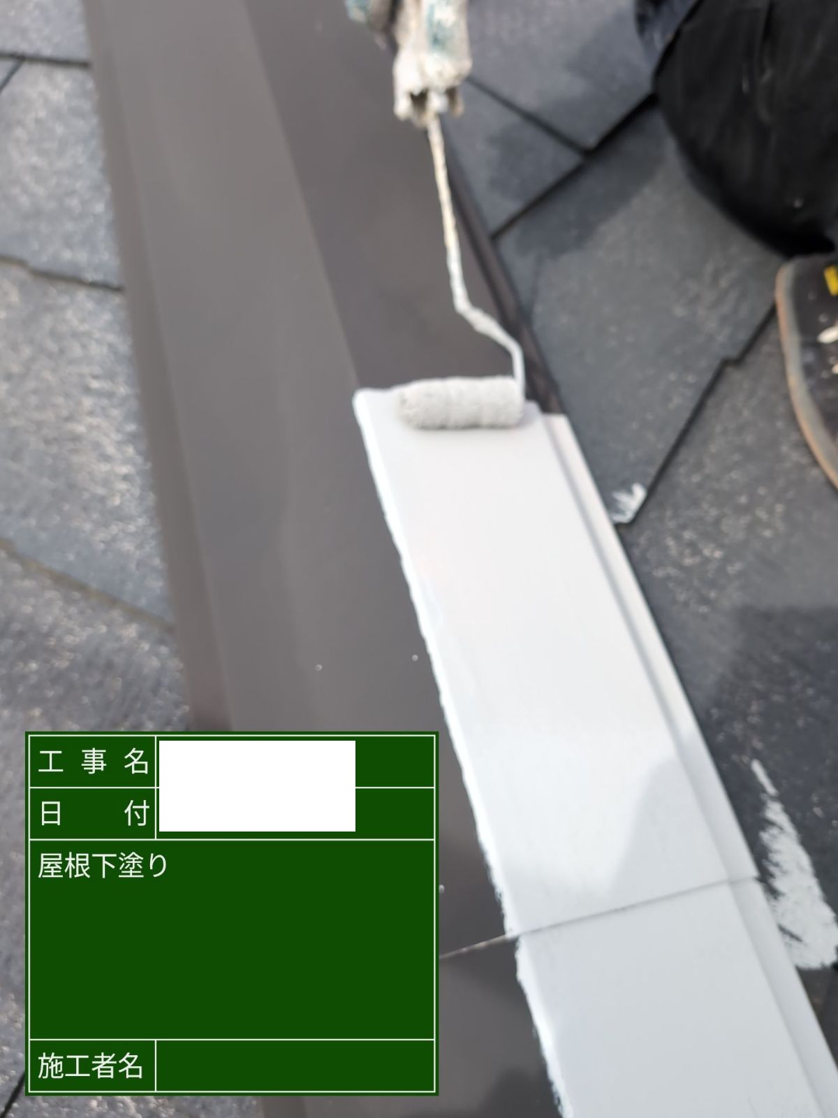 屋根塗装 下塗り 塗料の密着性を高めるため、下地を整えながら丁寧に進めていきます。
