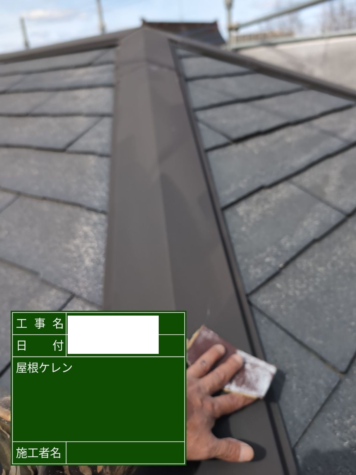 屋根塗装 ケレン 汚れや古い塗膜をしっかり落とし、塗装が密着しやすい状態にします。