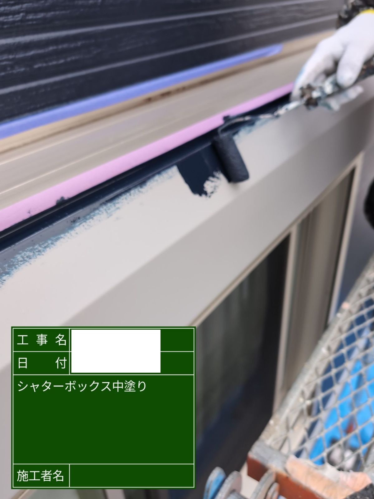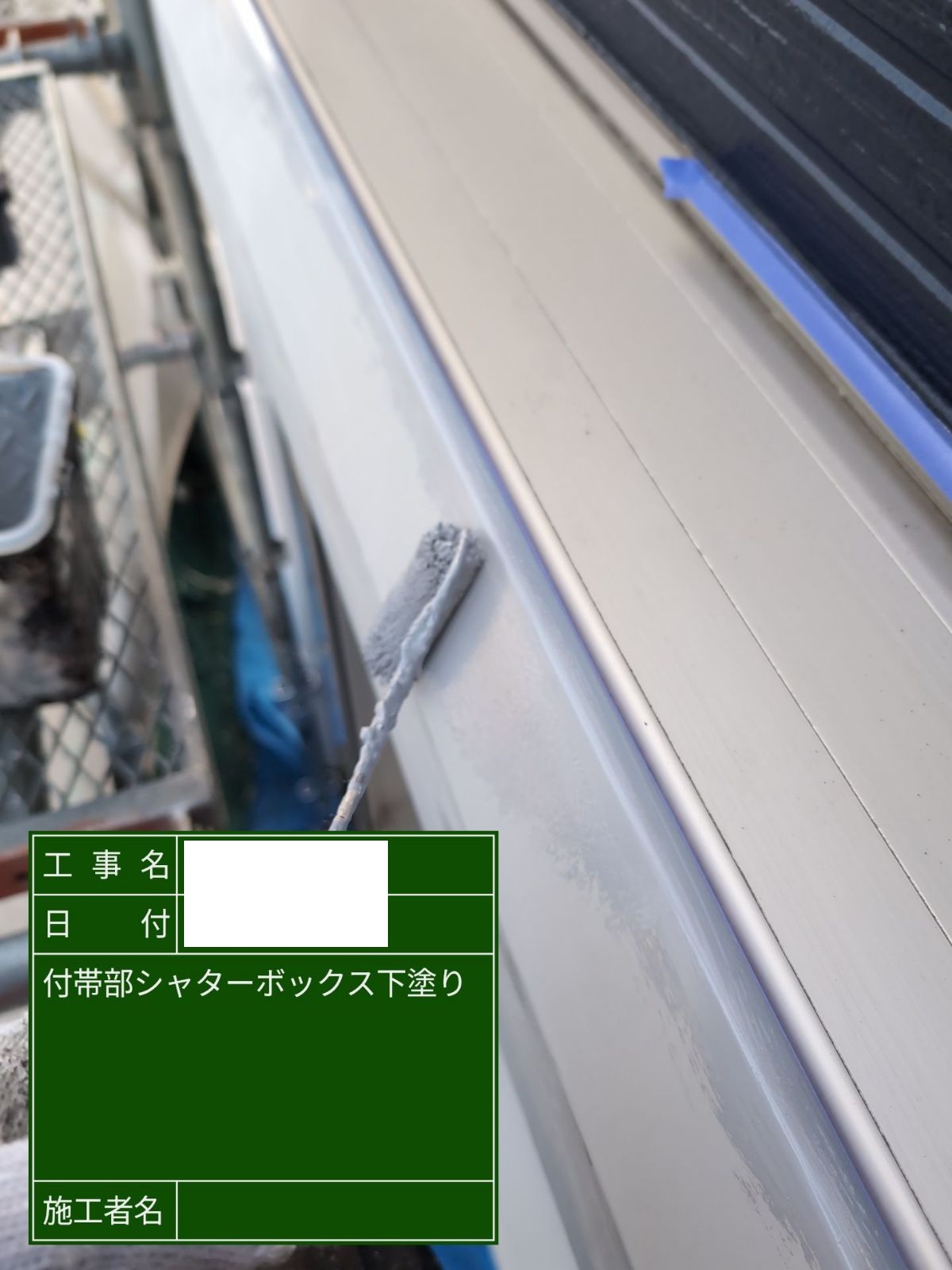 シャッターボックス 下塗り 下地との付着性を高める重要な工程です。